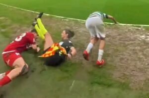(VÍDEO) Abalroou a arbitra e o que aconteceu a seguir está a criar uma enorme polémica na Turquia